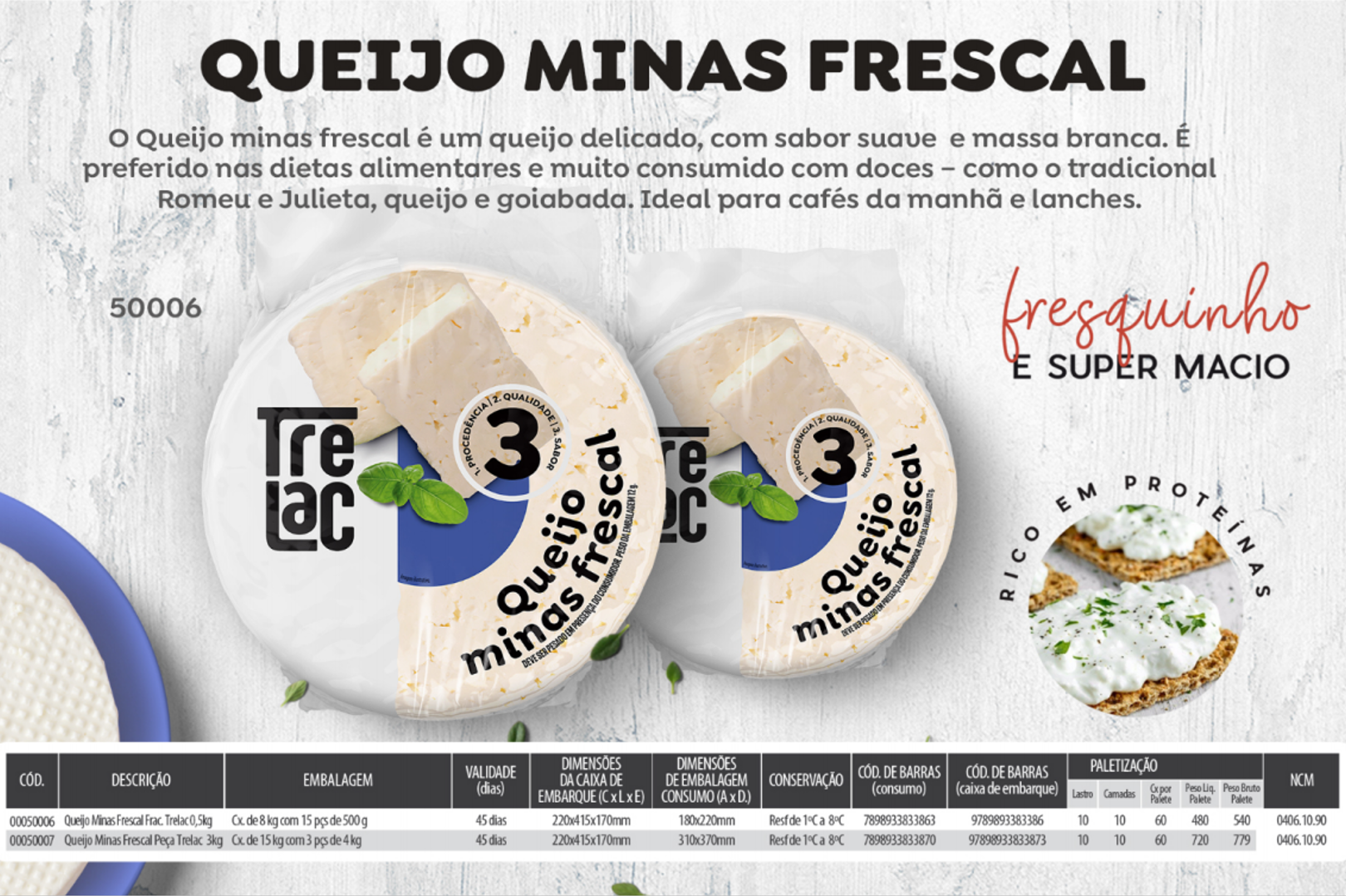 Queijo delicado, com sabor suave e massa branca. É o preferido nas dietas alimentares