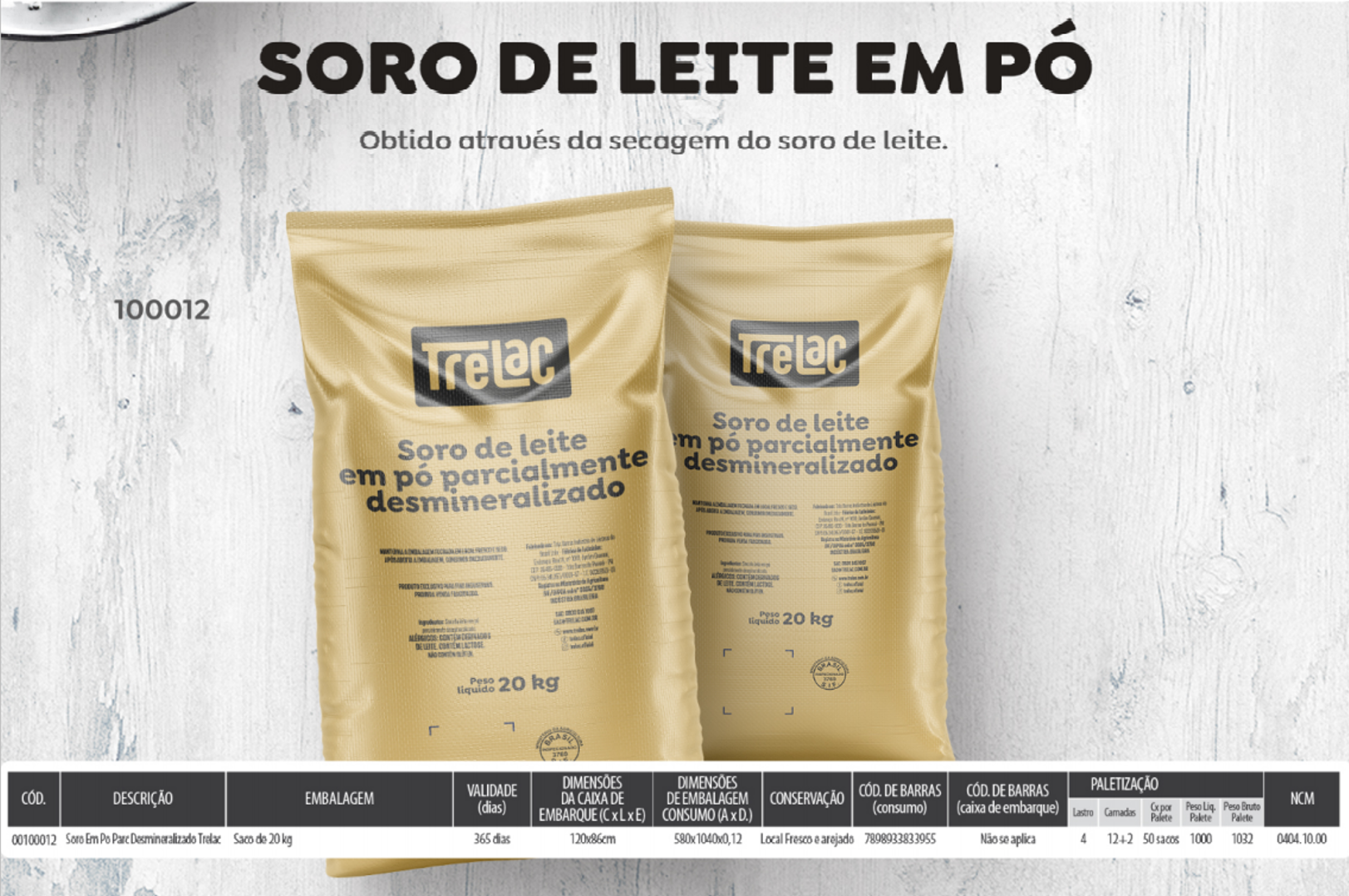 É obtido através da secagem do soro de leite.